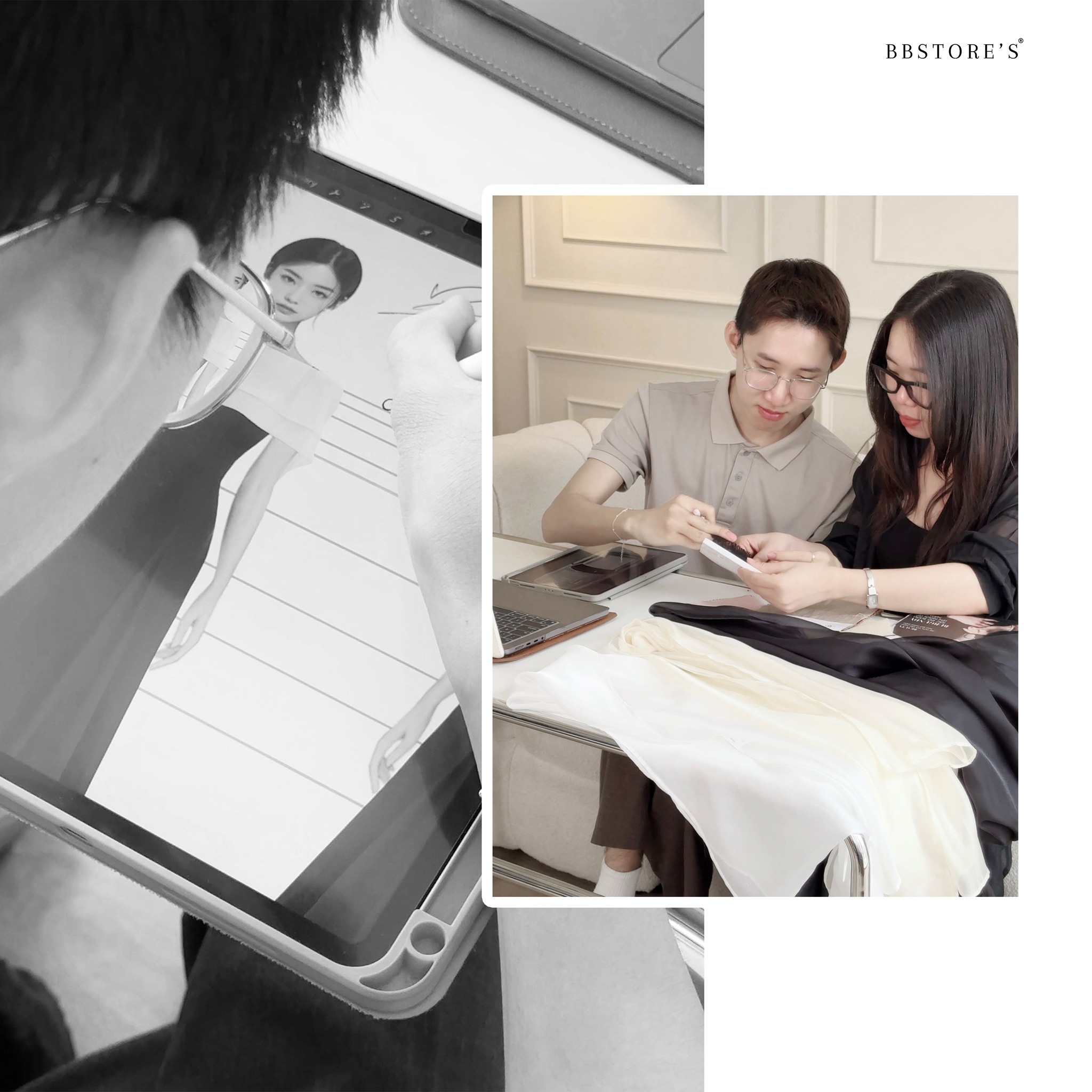 Ở một góc phòng, đội Media đang xem lại loạt ảnh vừa chụp hôm qua, chỉnh sửa ánh sáng và bố cục để đảm bảo từng thước hình đều giữ đúng tinh thần thương hiệu. Trong khi đó, bộ phận Thiết kế đang chăm chú hoàn thiện bản vẽ mới – từng đường phác họa mảnh mai như chính tinh thần mà BB theo đuổi: thanh lịch, nữ tính và có chiều sâu.