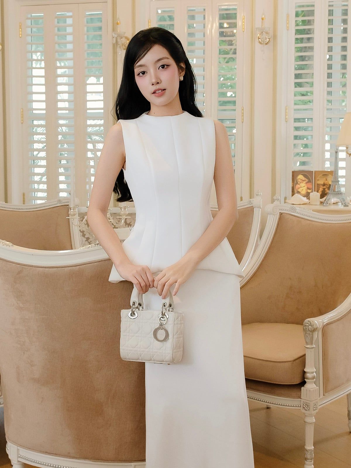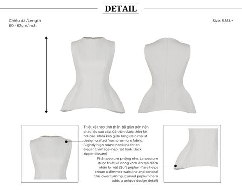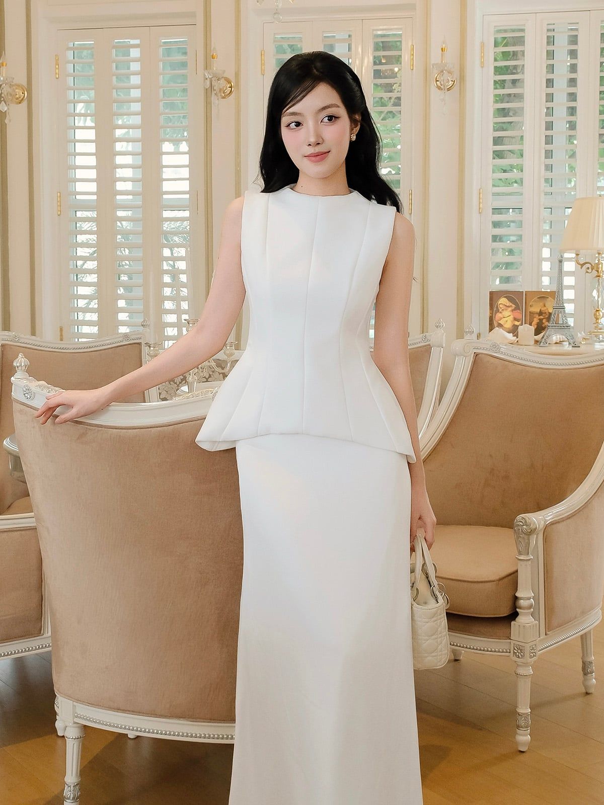 🔹 Thiết kế: Form áo peplum, cổ tròn, không tay