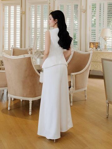 🔹 Áo kiểu AAB05B sở hữu form áo peplum nữ tính, kết hợp áo cổ tròn hơi cao để tạo cảm giác thanh lịch và kín đáo vừa đủ. Thiết kế áo không tay giúp phần vai và cánh tay trông thanh thoát hơn, đồng thời mang lại sự thoải mái trong những buổi tiệc hoặc sự kiện đông người. Phần peplum phồng nhẹ ôm khéo vòng eo, vì vậy nàng có được hiệu ứng eo thon và che bụng dưới tinh tế. Điểm đặc biệt nằm ở áo vạt cong với lai peplum cong vòm lên, tạo nét mềm mại và giúp tổng thể trông sang hơn khi nhìn nghiêng. Khóa kéo giữa lưng giúp nàng mặc vào gọn gàng và giữ phom đứng chuẩn.