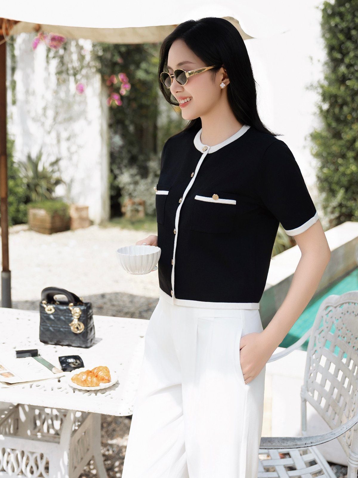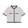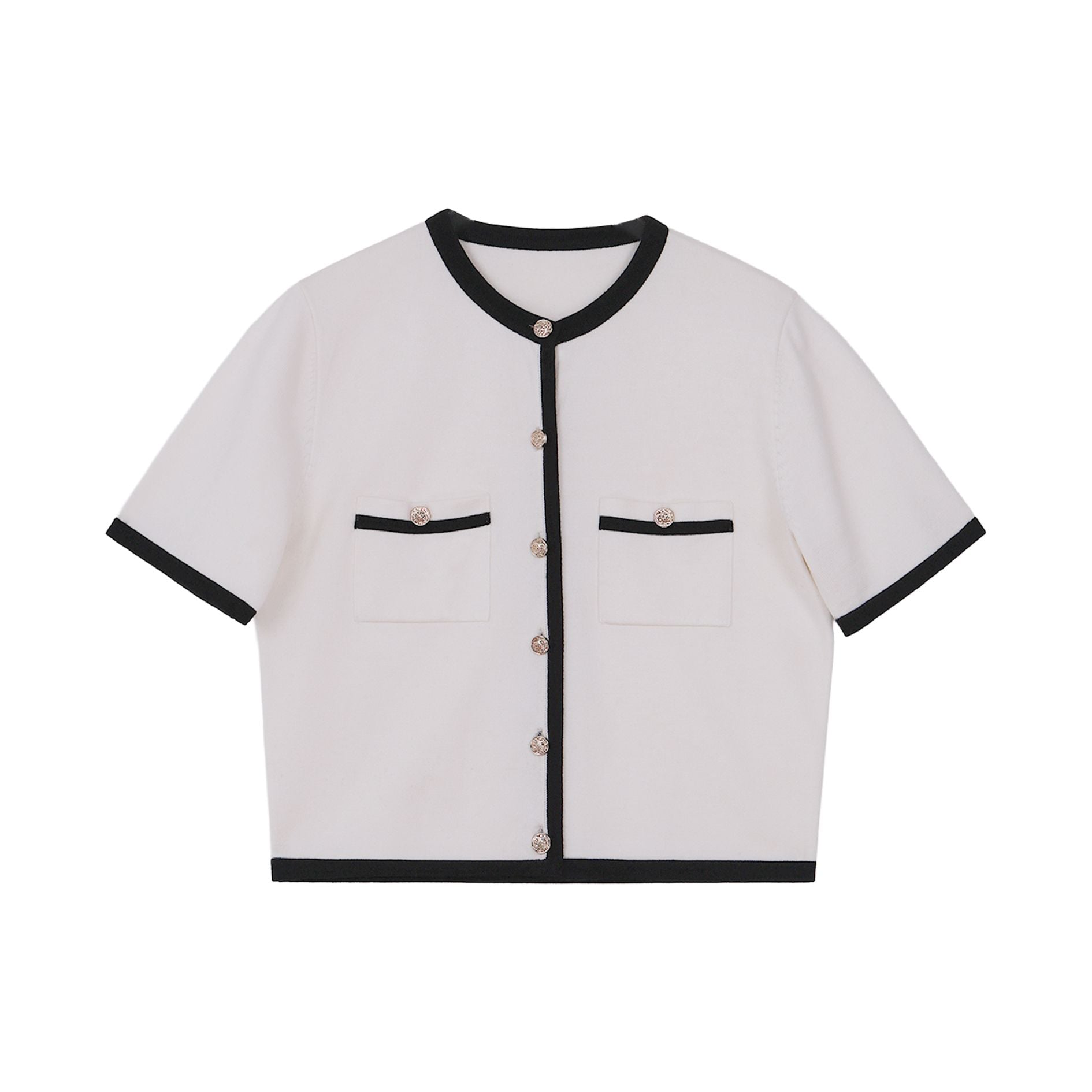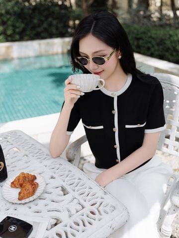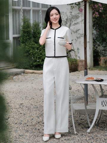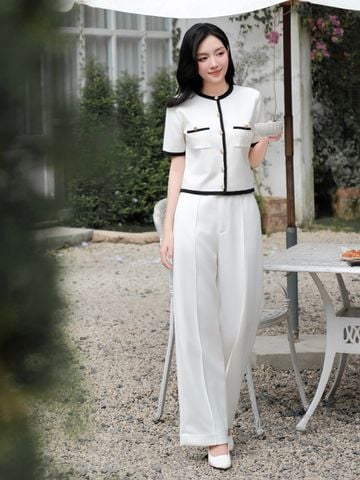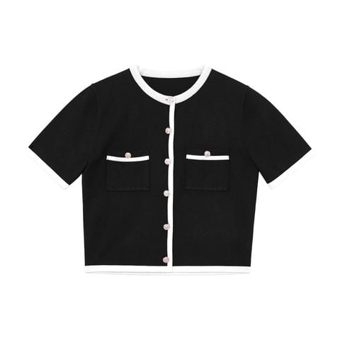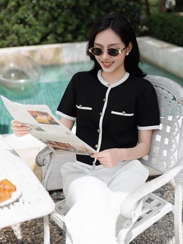 🔹 Chiếc áo được thiết kế form rộng vừa, tay ngắn, cổ tròn, tạo nên sự thoải mái và phóng khoáng cho nàng khi mặc. Điểm nhấn nổi bật nằm ở chi tiết phối viền ở cổ, lai áo, cửa tay và miệng túi giả, mang lại cảm giác tinh tế và khác biệt. Hàng nút kim loại cao cấp, chống rỉ được đính tỉ mỉ phía trước không chỉ bền bỉ mà còn làm tăng thêm vẻ sang trọng.
