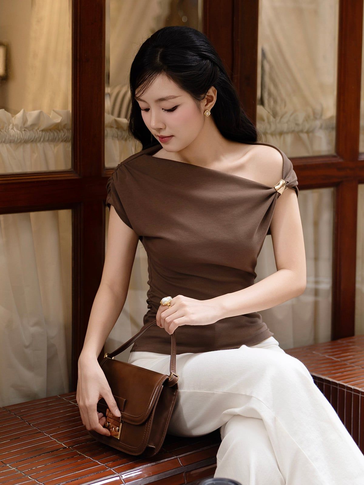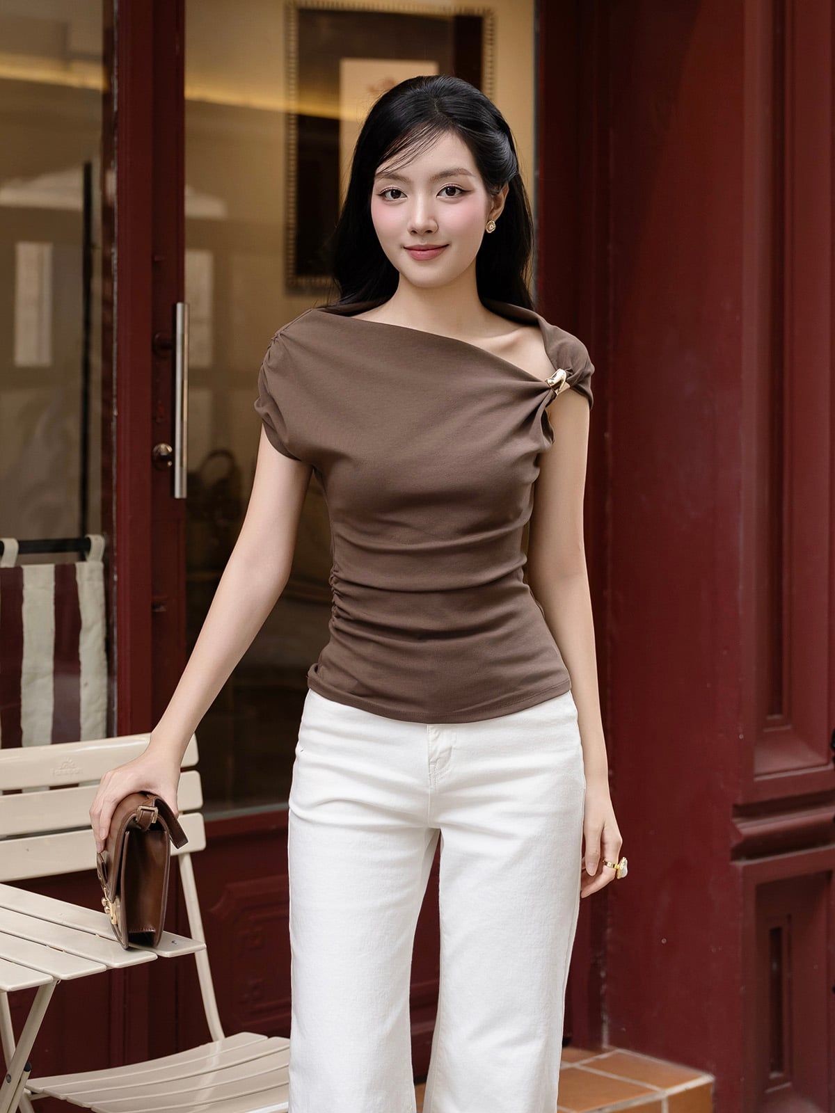 🔹 Áo dạo phố thun tay ngắn cổ xéo AAB42A mang đến cho nàng vẻ đẹp hiện đại pha chút phá cách đầy cuốn hút. Thiết kế này gợi cảm hứng về một cô gái tự tin, yêu sự tối giản nhưng vẫn muốn tạo dấu ấn riêng trong từng chi tiết nhỏ.