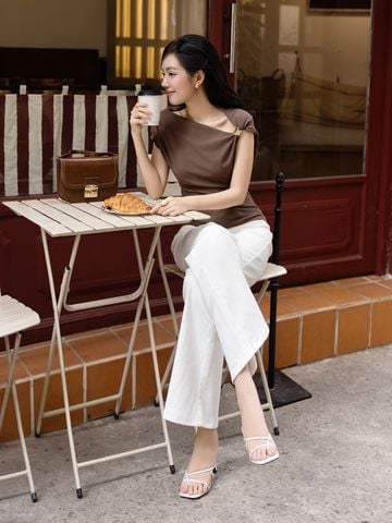 🔹 Chiếc áo dạo phố này dành cho nàng yêu phong cách smart casual, thích sự thoải mái của áo thun nhưng vẫn mong muốn tổng thể trông chỉn chu và có điểm nhấn. Form áo suông được xử lý khéo léo với phần trên hơi rộng và ôm nhẹ phía dưới, giúp tôn dáng mà không hề gò bó. Thiết kế cổ xéo bất đối xứng tạo hiệu ứng thị giác độc đáo, kết hợp khóa kim loại cao cấp mang lại nét sang nhẹ tinh tế. Chi tiết áo tay ngắn một bên cùng phần nhún vải ở sườn giúp nếp vải đổ tự nhiên, hỗ trợ che bụng dưới và tạo cảm giác vòng eo gọn gàng.
