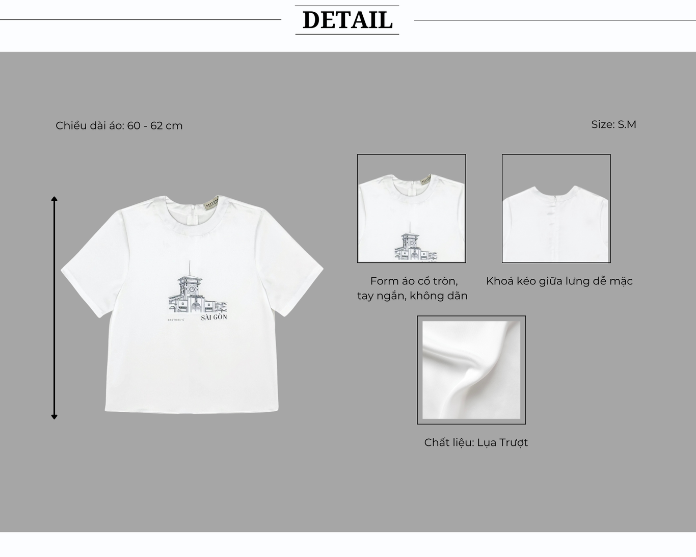 🔹 Áo được may một lớp, viền bọc tỉ mỉ và có khóa kéo sau lưng tiện lợi, dễ mặc. Chất liệu lụa trượt mềm mịn, mát nhẹ mang đến cảm giác dễ chịu khi mặc. Hình in cao cấp với các địa danh của Sài Gòn mang đậm dấu ấn riêng, thể hiện tinh thần trẻ trung và hiện đại. Nàng có thể mặc áo A4353T khi dạo phố, cà phê hoặc gặp gỡ bạn bè.
