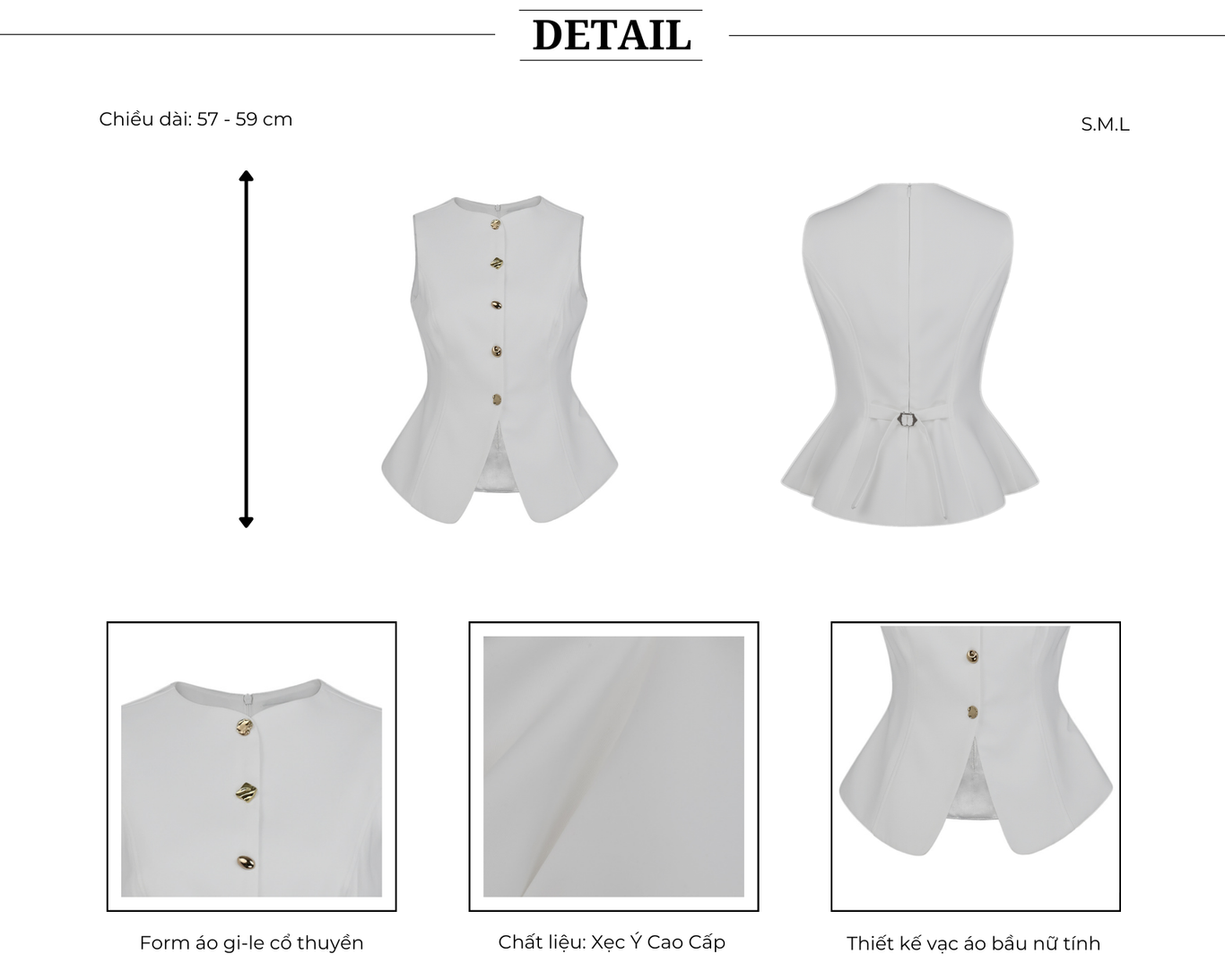 🔹 Chất liệu Xẹc Ý cao cấp giúp áo đứng form tốt, bề mặt mịn, dày dặn và thoáng mát. Nàng có thể phối áo gile A4321A cùng chân váy bút chì, quần tây hoặc chân váy xếp ly, phù hợp để mặc khi đi làm, đi họp, gặp gỡ khách hàng hoặc tham dự các sự kiện cần sự chỉn chu.
