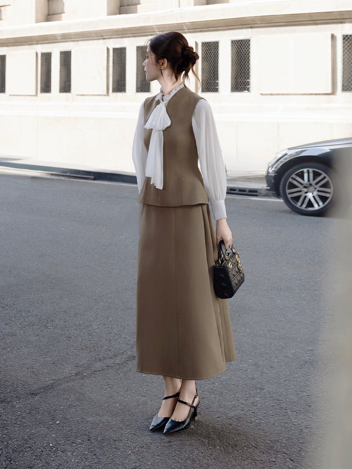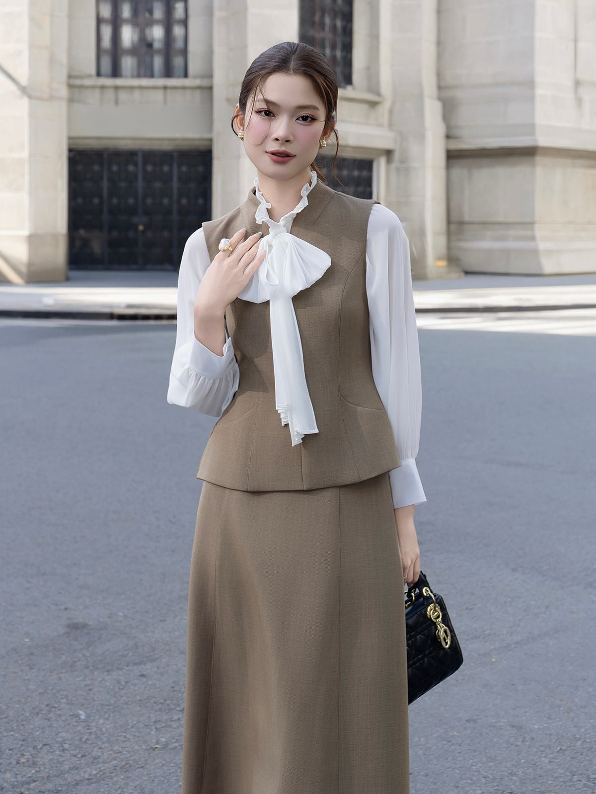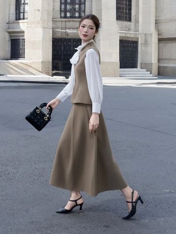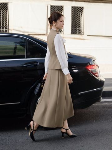 🔹 Nàng hãy phối áo với quần suông cạp cao hoặc chân váy bút chì để tạo vibe công sở quyền lực, rồi thêm giày mũi nhọn và túi da nhỏ. Nếu nàng muốn trẻ trung hơn, nàng có thể mix cùng chân váy chữ A, thêm khuyên tai vàng và kính mát để xuống phố thật sang.