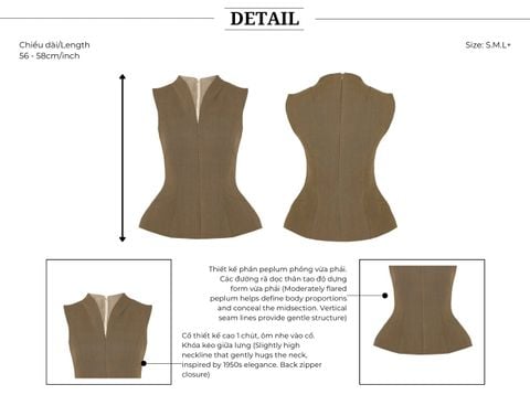 🔹 Thiết kế: Form áo peplum - không tay - cổ V