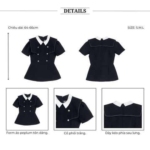 Áo kiểu peplum tay ngắn - A2596 của nhà BBSTORE'S là lựa chọn hoàn hảo cho những cô nàng yêu thích sự nữ tính và sang trọng. Với thiết kế tay phồng ngắn trẻ trung và cổ áo trắng tinh tế, sản phẩm không chỉ mang lại vẻ đẹp thanh lịch mà còn tôn lên đường nét quyến rũ của người mặc. Áo được may 2 lớp với đúp lót và khóa kéo phía sau lưng, giúp nàng dễ dàng hơn trong quá trình mặc.