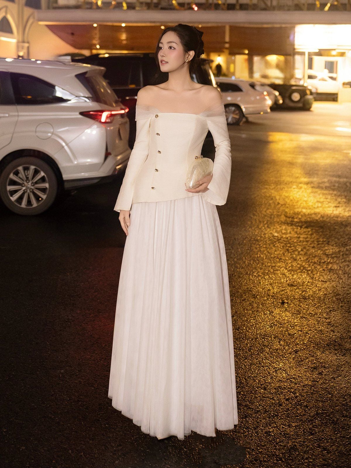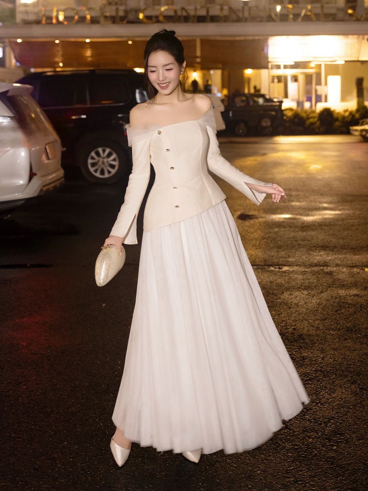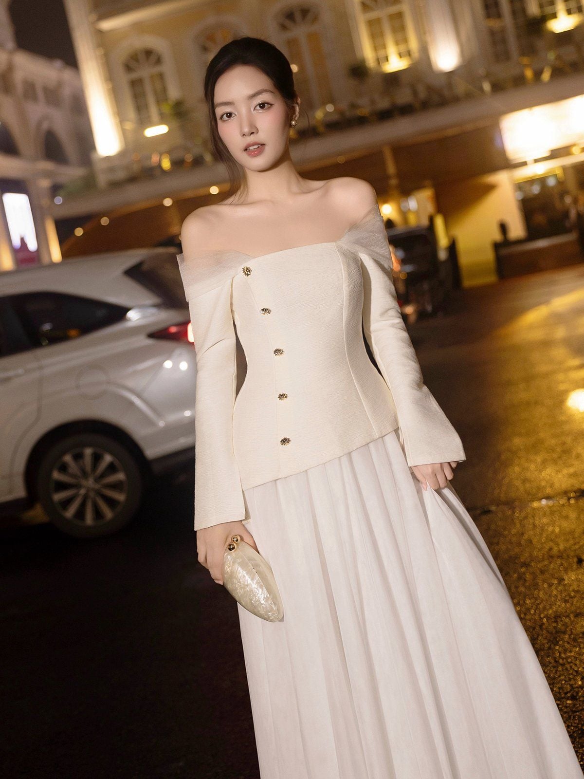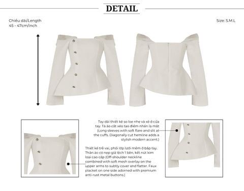 🔹 Thiết kế: Form áo peplum phồng nhẹ, trễ vai tay dài