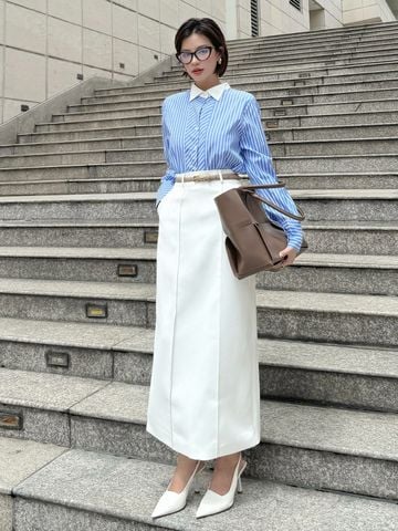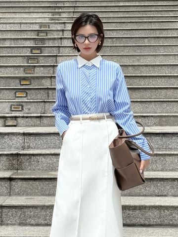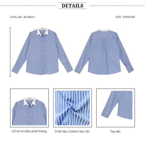 🔹 Áo có form rộng basic, tay dài và cổ sơ mi kiểu phối trắng, giúp nàng dễ dàng phối hợp với quần tây, chân váy bút chì hoặc chân váy jean. Kết hợp với một đôi giày cao gót và túi xách thanh lịch sẽ tạo nên phong cách hoàn hảo cho những buổi làm việc hay gặp gỡ bạn bè.