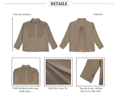 Áo sơ mi tay dài xếp ly - A3576 là mẫu áo hoàn hảo cho những cô nàng yêu thích sự thanh lịch và thời thượng. Với chất liệu linen tơ mỏng nhẹ, sản phẩm không chỉ thấm hút tốt mà còn mang lại cảm giác thoải mái suốt cả ngày. Thiết kế form sơ mi rộng basic kết hợp với tay áo xẻ và xếp ly trước ngực tạo nên vẻ đẹp tinh tế và cuốn hút cho người mặc.