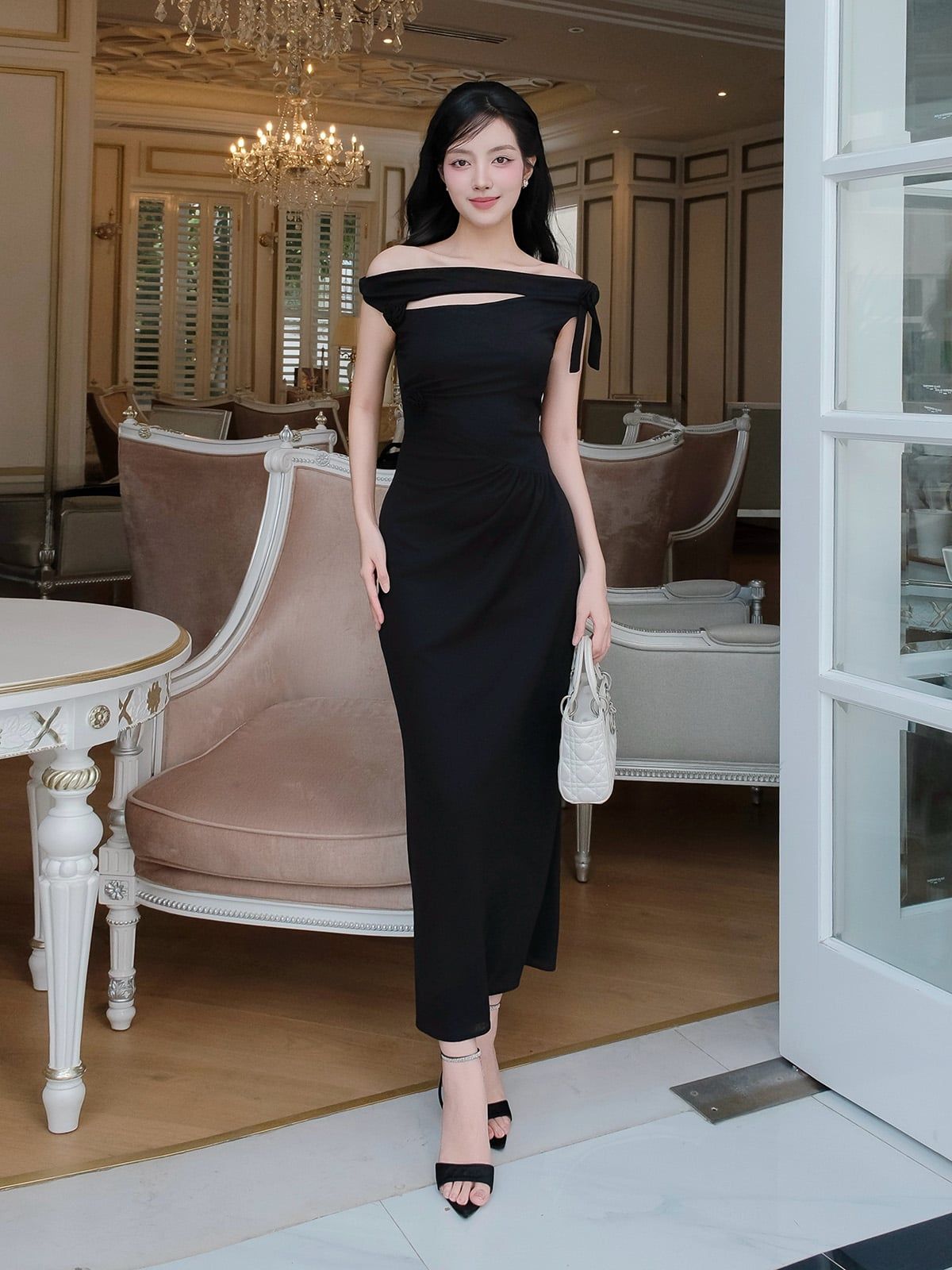 🔹 Nàng có thể phối theo phong cách “Evening Chic” với chân váy bút chì hoặc quần suông cạp cao, thêm khuyên tai ngọc và clutch nhỏ. Nàng cũng có thể phối theo phong cách “Minimal Glam” bằng cách layer cùng đầm 2 dây, hoàn thiện với giày mũi nhọn và một chiếc dây chuyền mảnh.