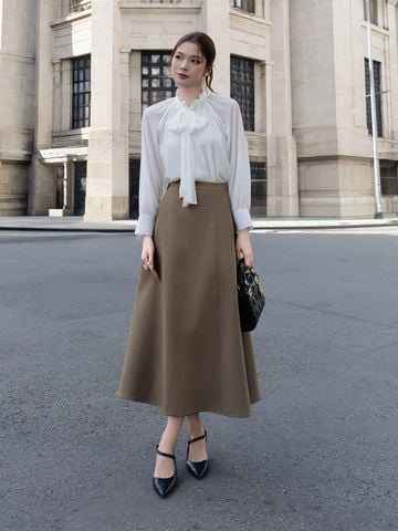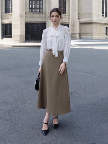 🔹 VAA27A phù hợp để nàng đi làm, dự họp, gặp gỡ đối tác, dạo phố cuối tuần, hẹn hò nhẹ nhàng hoặc chụp hình ở những không gian có nắng. Điểm nổi bật của chân váy dài này nằm ở phom A tôn eo, độ xòe tự nhiên và phần khóa kéo giữa lưng đi kèm bản lưng chắc chắn, giúp vòng eo gọn hơn và outfit trông luôn chỉn chu.