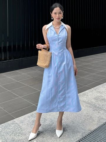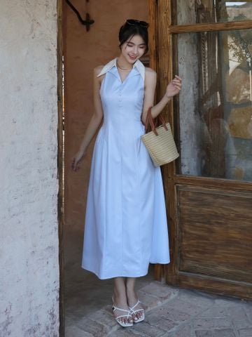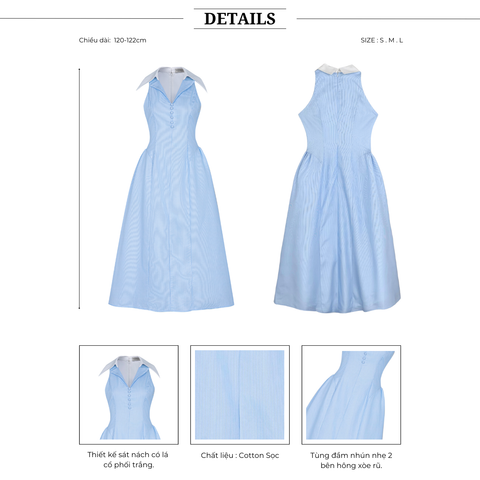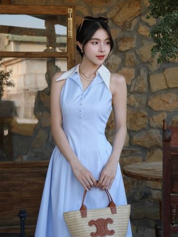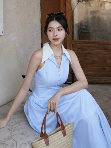 🔹 Đầm dài xòe sát nách - D3980T là mẫu đầm hoàn hảo cho những cô nàng yêu thích sự nữ tính và thanh lịch. Với thiết kế sát nách độc đáo và lá cổ phối trắng, sản phẩm không chỉ mang đến vẻ đẹp quyến rũ mà còn tôn lên nét thanh lịch cho người mặc. Chất liệu cotton sọc xanh mềm mại cùng với đầm may 2 lớp và lót đúp giúp nàng luôn cảm thấy thoải mái trong từng bước di chuyển.