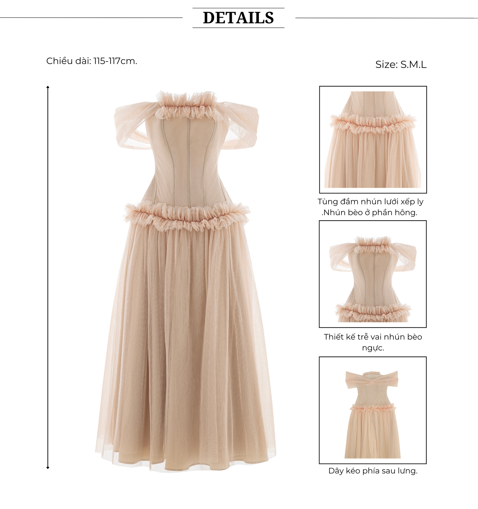 ▪ Chiều dài đầm dự tiệc : 115-117cm.