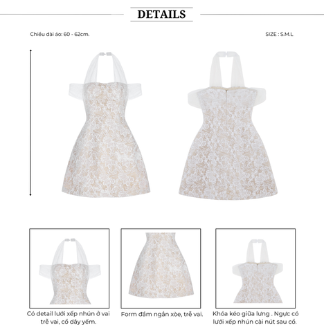 🔹 Điểm nhấn đặc biệt ở phần vai và ngực sử dụng lưới xếp nhún tinh tế, tạo nét mềm mại, duyên dáng. Đầm được may từ chất liệu ren cotton thoáng mát và mềm mại, tạo cảm giác thoải mái khi mặc. Lớp lót bên trong và khóa kéo giấu giữa lưng được xử lý tỉ mỉ, tinh tế, giúp nàng luôn tự tin tỏa sáng trong các bữa tiệc, hẹn hò hay sự kiện đặc biệt.