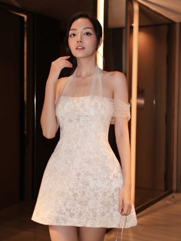 🔹 Đầm dự tiệc ngắn trễ vai cổ yếm - D4209T là lựa chọn hoàn hảo dành cho cô nàng yêu thích sự nữ tính, ngọt ngào và quyến rũ. Form đầm ngắn xòe nhẹ tôn lên vóc dáng thanh thoát. Kết hợp với thiết kế trễ vai, cổ yếm giúp khoe khéo bờ vai ngọc ngà đầy quyến rũ.
