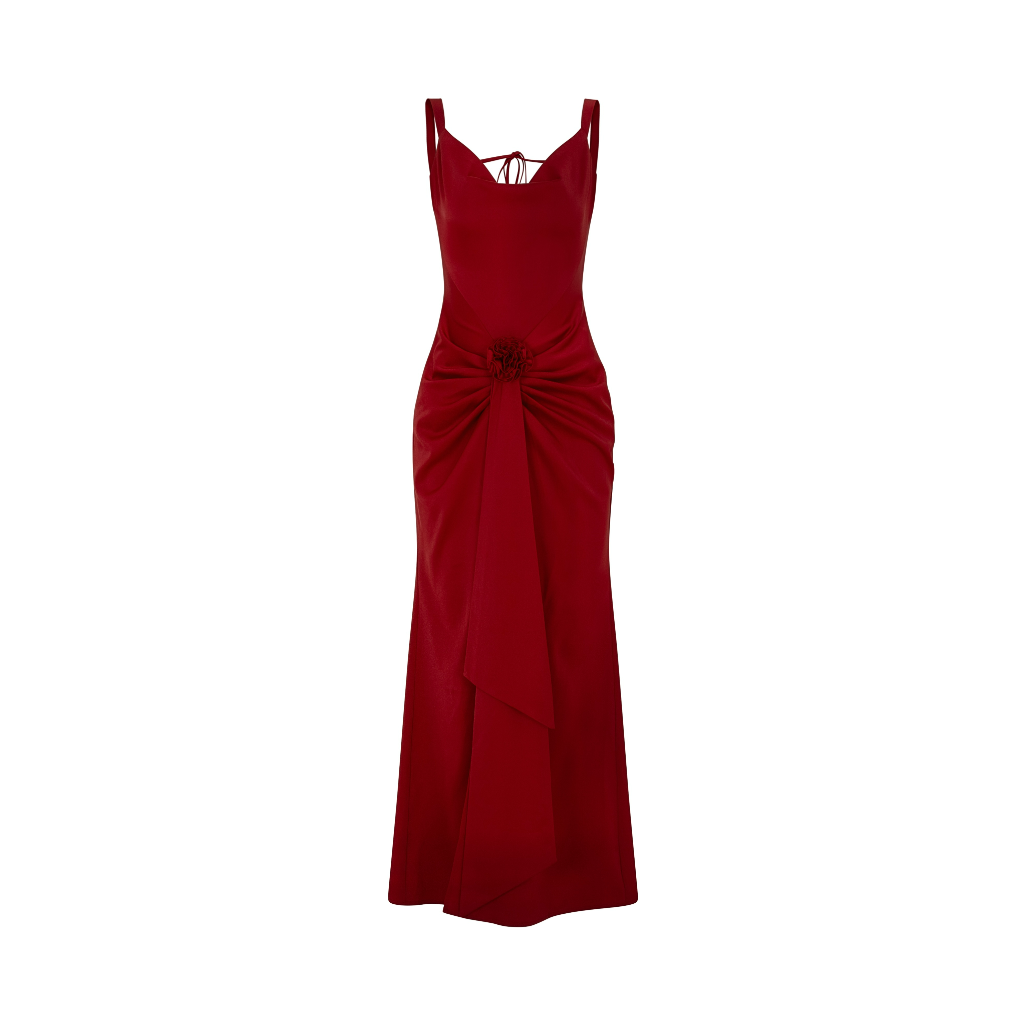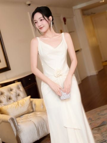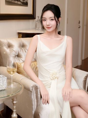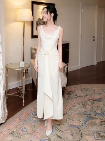 🔹 Điểm nhấn của đầm còn có chi tiết hoa vải nhún lệch hông và đường xẻ tà trước giúp tạo hiệu ứng kéo dài đôi chân, tăng phần cuốn hút. Sản phẩm được may 2 lớp chỉn chu, khóa kéo bên sườn tiện lợi, phù hợp khi dự tiệc, chụp ảnh hoặc xuất hiện tại những không gian trang trọng.