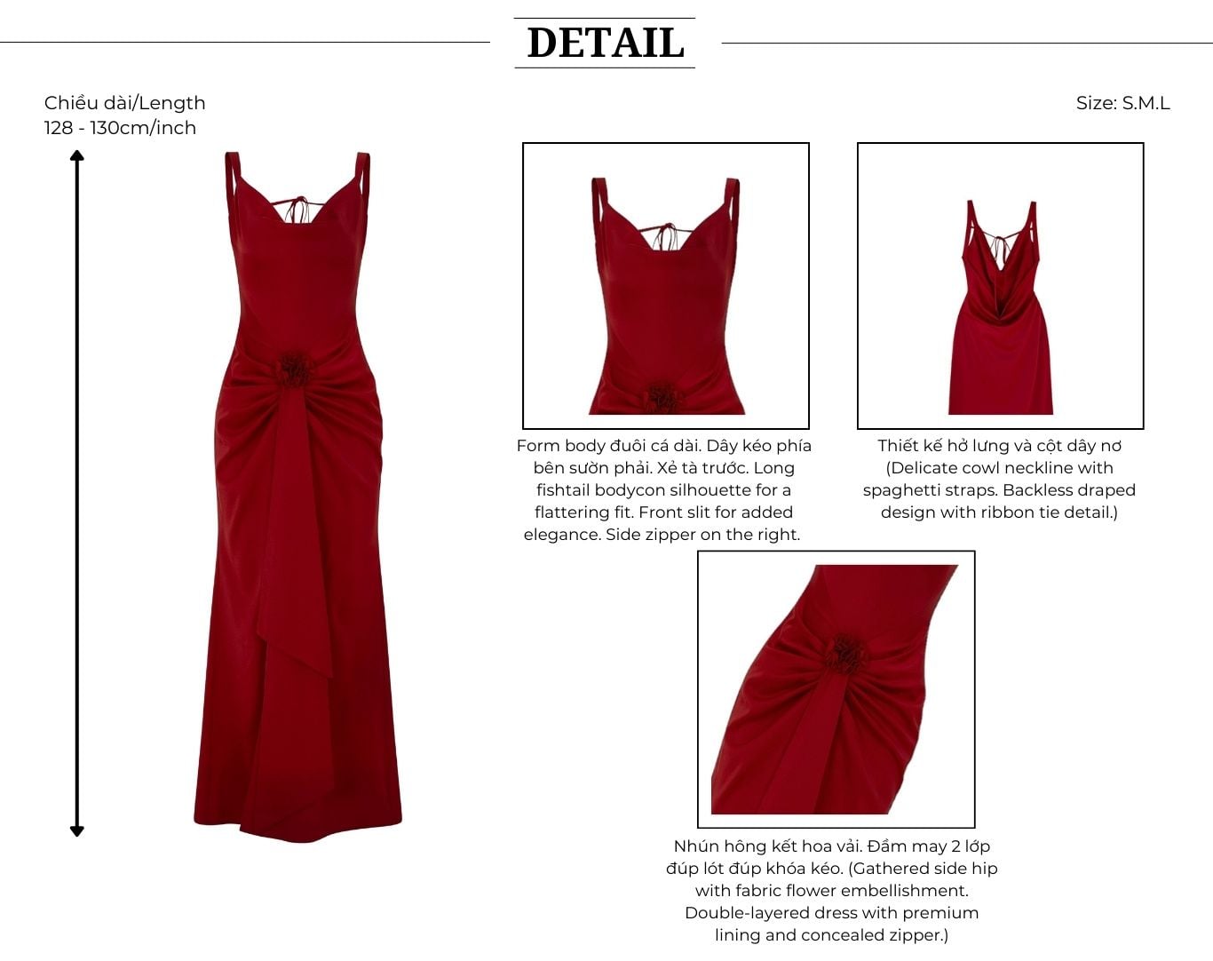🔹 Đầm lụa đuôi cá cổ đổ kết hoa - D3531 là thiết kế dành riêng cho những buổi tiệc sang trọng. Với form body đuôi cá ôm sát cơ thể, tôn lên đường cong gợi cảm, kết hợp chất liệu lụa Hàn Châu mềm mại tạo độ rũ tự nhiên và thanh thoát. Đầm còn sở hữu thiết kế 2 dây với cổ đổ cùng chi tiết lưng hở được thắt nơ nữ tính, tinh tế.