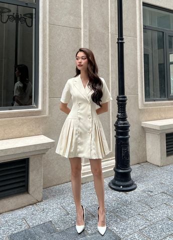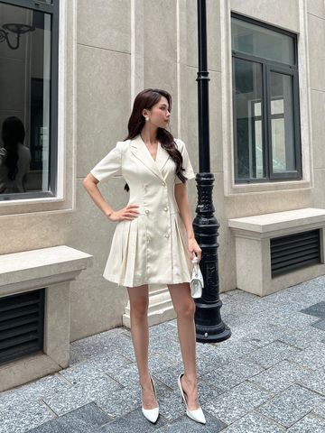 🔹 Tên sản phẩm: Đầm sơ mi xếp ly phối cổ vest - D2404