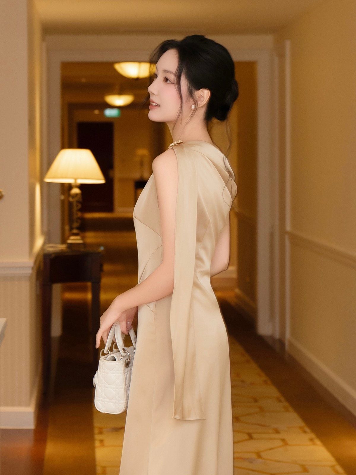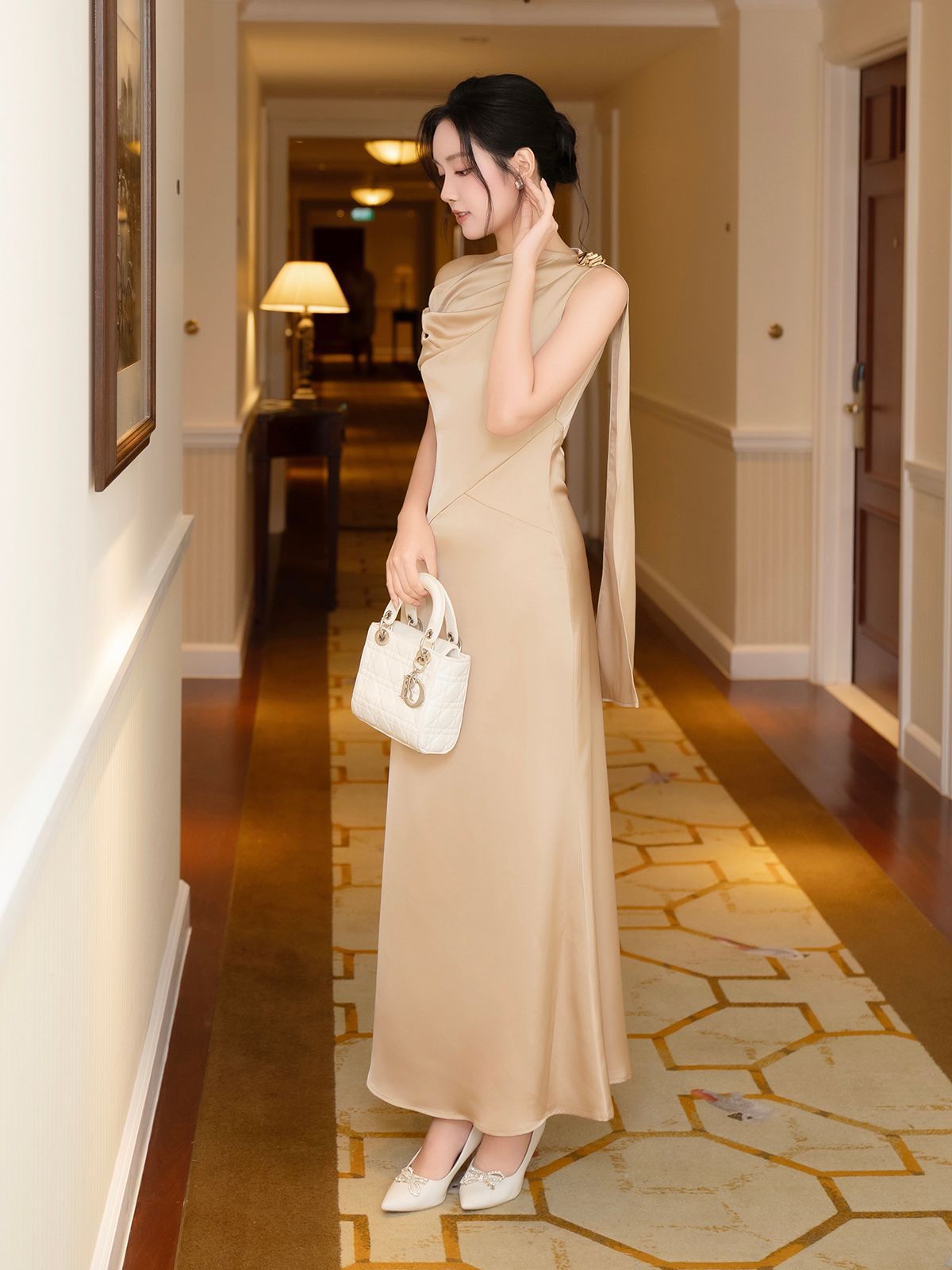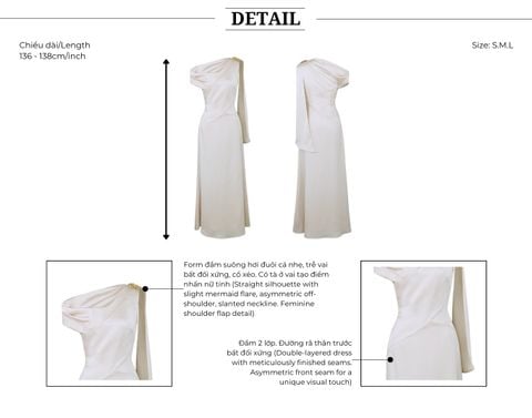 🔹 Chất liệu lụa đanh 2 lớp, bề mặt mịn, có độ dày vừa phải, rủ mềm tự nhiên và không bám sát cơ thể – giúp nàng luôn cảm thấy thoải mái, tự tin trong mọi khoảnh khắc. Đường may viền tỉ mỉ và khóa kéo ẩn sau lưng đảm bảo độ chắc chắn và tinh tế cho tổng thể trang phục.
