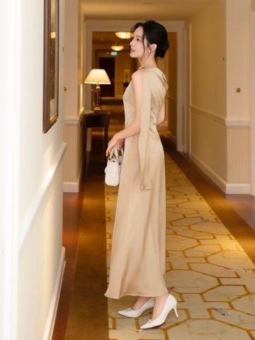 🔹 Tên sản phẩm: Đầm suông tiệc lụa dài lệch vai D4480B