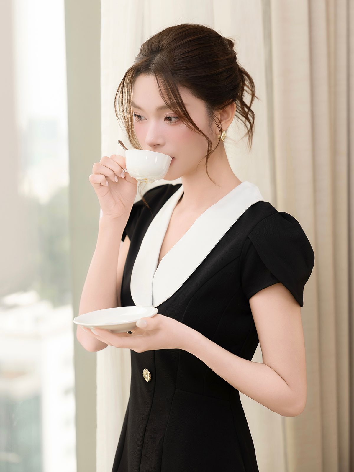 🔹 Chất liệu đầm cotton 2 lớp được may viền tỉ mỉ cho cảm giác mát tay, đứng phom vừa đủ mà vẫn êm ái, hạn chế nhăn và thân thiện với làn da. Bề mặt phối chất vải có độ ánh nhẹ giúp tổng thể sáng gương mặt mà không phô trương. Bảng màu đa dụng gồm đầm đen sang trọng, đầm kem trang nhã và đầm trắng thanh khiết – dễ phối đồ, phù hợp nhiều tone da.