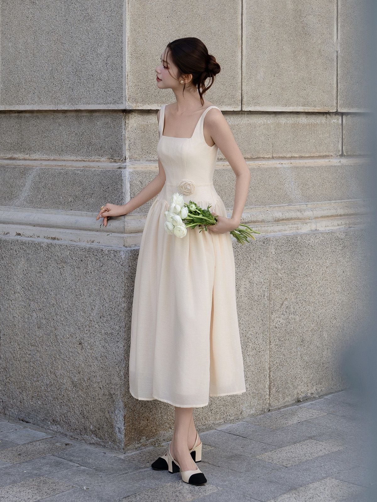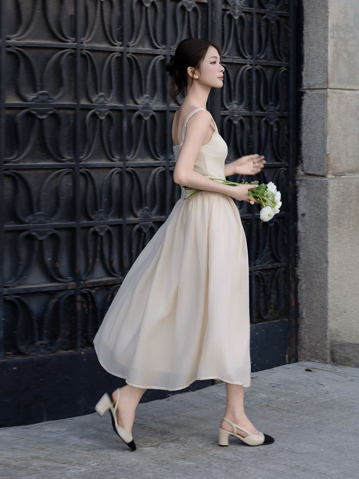 🔹 Nàng có thể phối đầm voan dài này cùng giày slingback hoặc sandal quai mảnh để giữ vẻ nữ tính, kết hợp túi nhỏ và trang sức ngọc trai cho phong cách nàng thơ. Hoặc nàng có thể chọn giày bệt, mũ cói và túi vải cho những chuyến dạo phố, du lịch nhẹ nhàng.