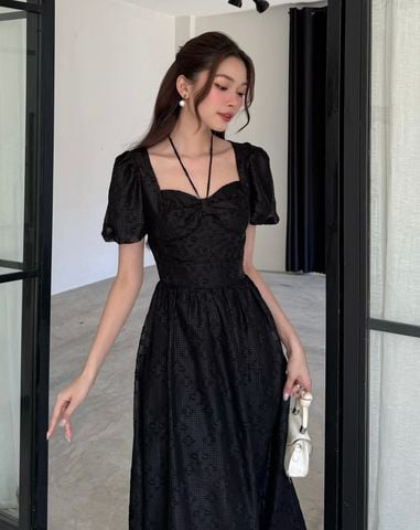 🔹 Tên sản phẩm: Đầm xòe tay phồng voan thêu hoa - D3470