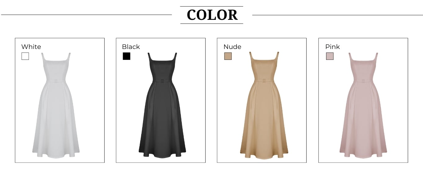 🔹 Form đầm dài dáng midi với đầm xòe phồng nhẹ giúp tổng thể cân đối, tạo hiệu ứng vòng eo gọn và đôi chân trông thon hơn. Phần thân trên vừa vặn cùng cổ vuông và 2 dây mảnh mang đến nét nữ tính hiện đại, trong khi tùng váy xòe tự nhiên tạo chuyển động mềm mại khi nàng đi lại. Chi tiết xếp ly 2 bên là điểm nhấn duyên dáng, khiến chiếc đầm tiệc trông có cấu trúc hơn mà vẫn giữ sự bay bổng. Belt vải đi kèm giúp nàng dễ “siết” eo theo ý thích, và khóa kéo giữa lưng hỗ trợ mặc vào gọn gàng, chỉn chu. Đây là lựa chọn lý tưởng cho nàng đang tìm một mẫu đầm dự tiệc tối giản mà sang.