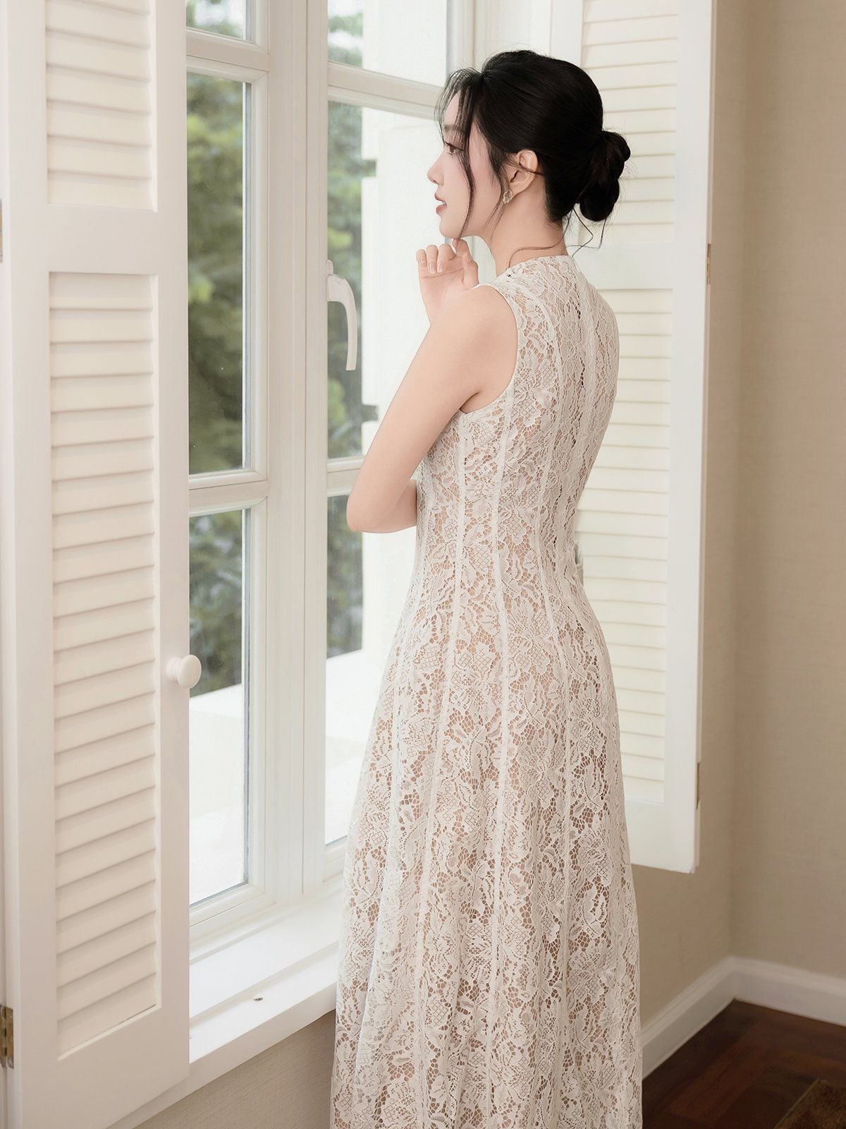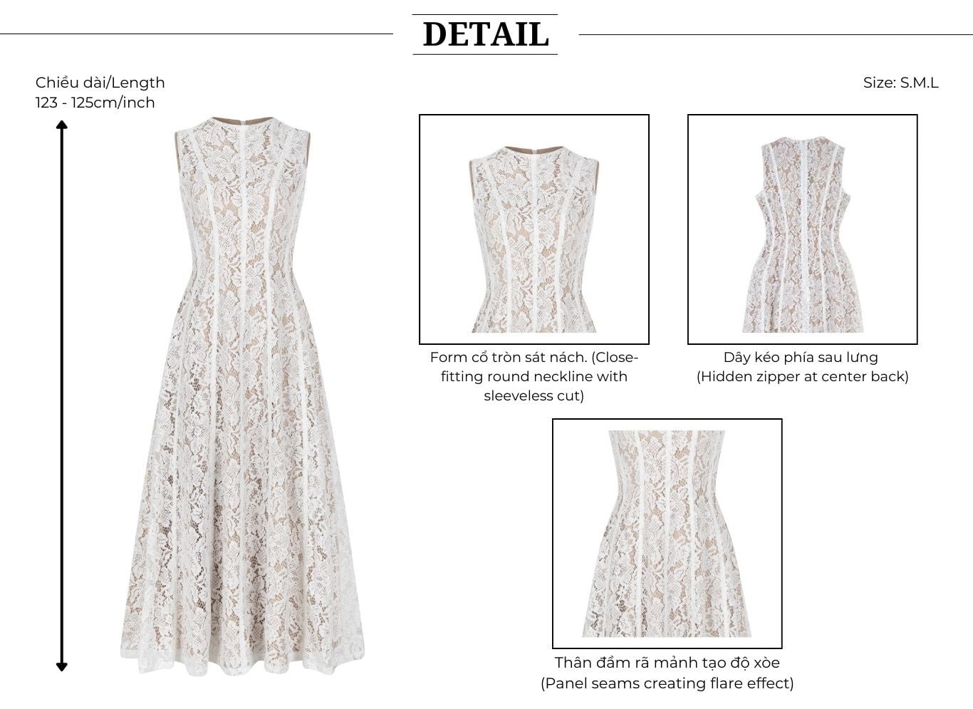 🔹 Form dáng dài xòe rũ cùng thiết kế cổ tròn sát nách giúp tôn lên bờ vai thanh mảnh, đồng thời tạo cảm giác nhẹ nhàng và thoải mái cho người mặc. Những đường cắt rã mảnh được may tỉ mỉ mang lại độ xòe bồng bềnh, giúp chiếc đầm xòe vừa giữ được nét tinh khôi, vừa tạo sự uyển chuyển trong từng bước di chuyển. Đây là điểm cộng tuyệt vời cho nàng khi xuất hiện tại các buổi tiệc hay sự kiện quan trọng.