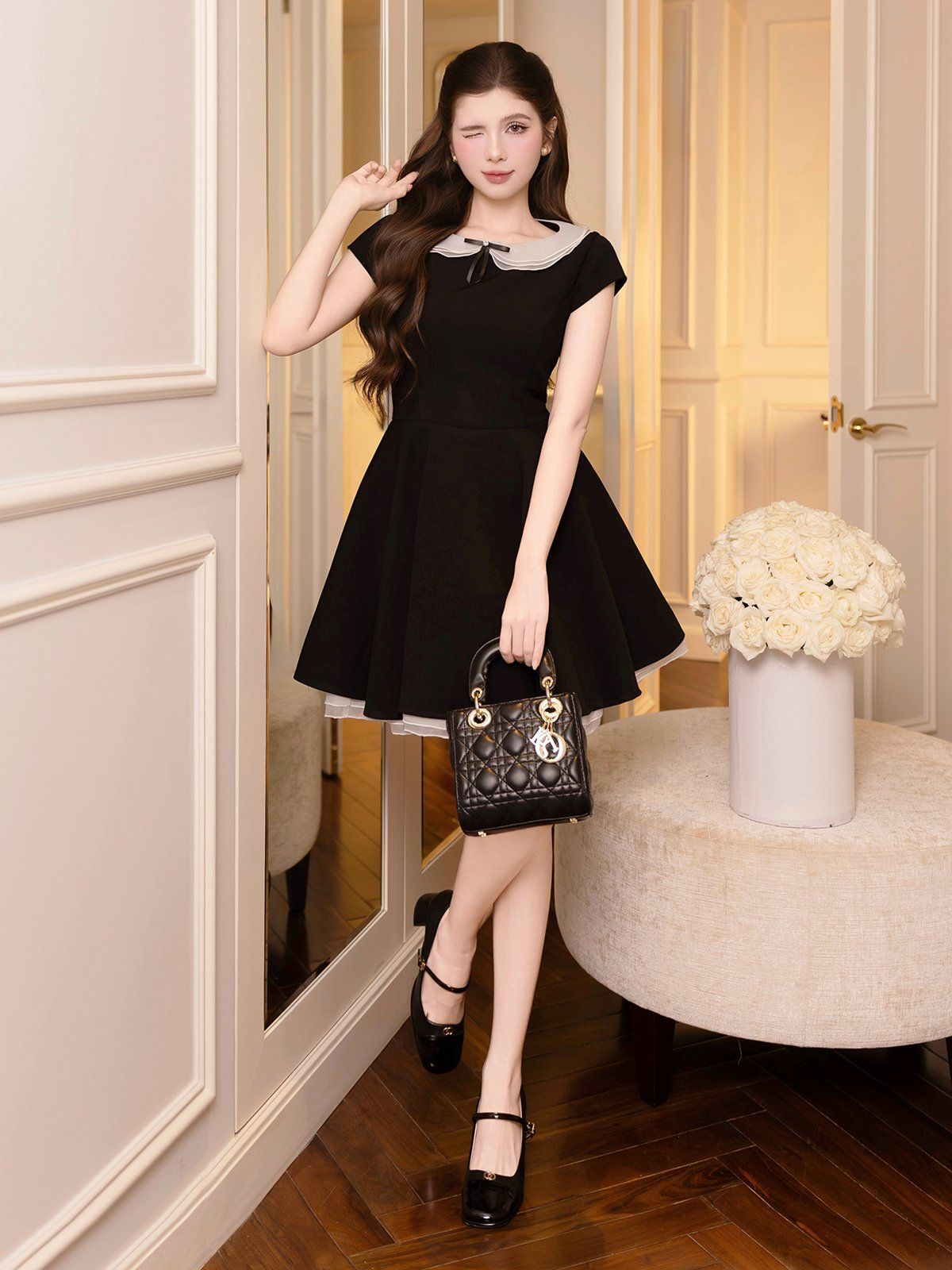 🔹 Chất liệu đầm cotton đen hai lớp, may viền tỉ mỉ mang lại cảm giác đứng form nhưng vẫn thoải mái, dễ vận động, phù hợp mặc cả ngày. Màu đen kinh điển giúp chiếc đầm ngắn này trở thành item dễ phối, phù hợp nhiều tone da và nhiều không gian khác nhau từ đầm dự tiệc, đầm đi tiệc sang trọng cho đến những buổi gặp gỡ, chụp hình hay hẹn hò lãng mạn.
