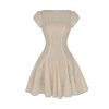 🔹 Form đầm ngắn trên gối với dáng đầm xòe tạo hiệu ứng vòng eo thon gọn và đôi chân dài hơn. Phần cổ thuyền thanh thoát kết hợp tay con nhún phồng nhẹ ở vai giúp che bắp tay khéo léo. Tùng váy được rã mảnh và phối tùng con tạo độ phồng tự nhiên, vì vậy tổng thể chiếc đầm tiệc trở nên bồng bềnh mà vẫn giữ được sự thanh lịch. Sản phẩm có hai phiên bản đầm đen và đầm kem để nàng linh hoạt lựa chọn theo cá tính riêng.