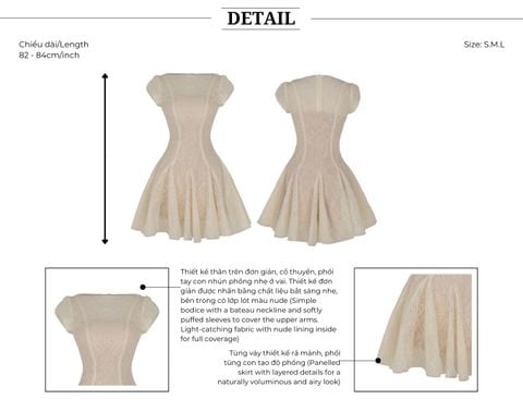 🔹 Thiết kế: Form đầm ngắn trên gối, dáng xoè, cổ thuyền, có tay con