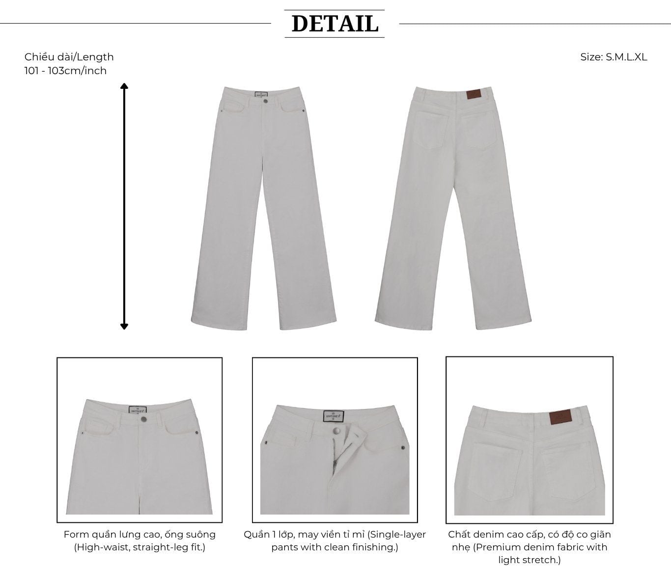 🔹 Form quần lưng cao, ống suông được cân chỉnh chuẩn xác, giúp phần eo gọn, hông thoáng và chân nhìn dài hơn. Quần 1 lớp, đường may tỉ mỉ chắc chắn và viền hoàn thiện sạch sẽ cho cảm giác bền bỉ, chỉn chu. Bảng màu cơ bản có quần đen sang trọng và quần trắng tinh khôi, dễ phối với hầu hết tủ đồ.