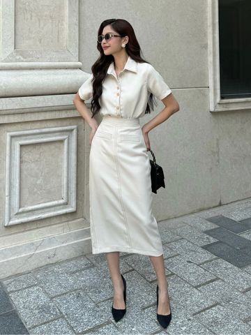 🔹 Set áo sơ mi phối chân váy - K3265 là lựa chọn hoàn hảo cho những cô nàng yêu thích sự thanh lịch và sang trọng. Set sản phẩm bao gồm áo sơ mi form rộng tay ngắn, mang đến sự trẻ trung và năng động cho nàng.