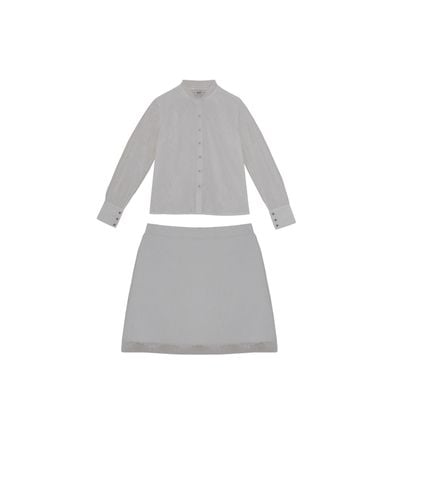 🔹 Thiết kế: Form áo sơ mi rộng vừa, tay dài. Form váy A ngắn trên gối