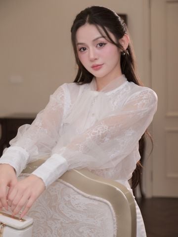 🔹 Phần áo sơ mi tay dài được phối tinh tế giữa lưới mềm và ren hoa cotton, tạo cảm giác nhẹ nhàng và thoáng mát khi mặc. Cổ nơ cách điệu mang đến điểm nhấn duyên dáng, giúp nàng dễ dàng biến tấu phong cách – có thể buộc nơ gọn gàng khi dự tiệc, hoặc thả tự nhiên khi đi dạo phố. Tay áo viền ren nhỏ và nút kiểu càng làm tăng nét thanh lịch cho tổng thể.